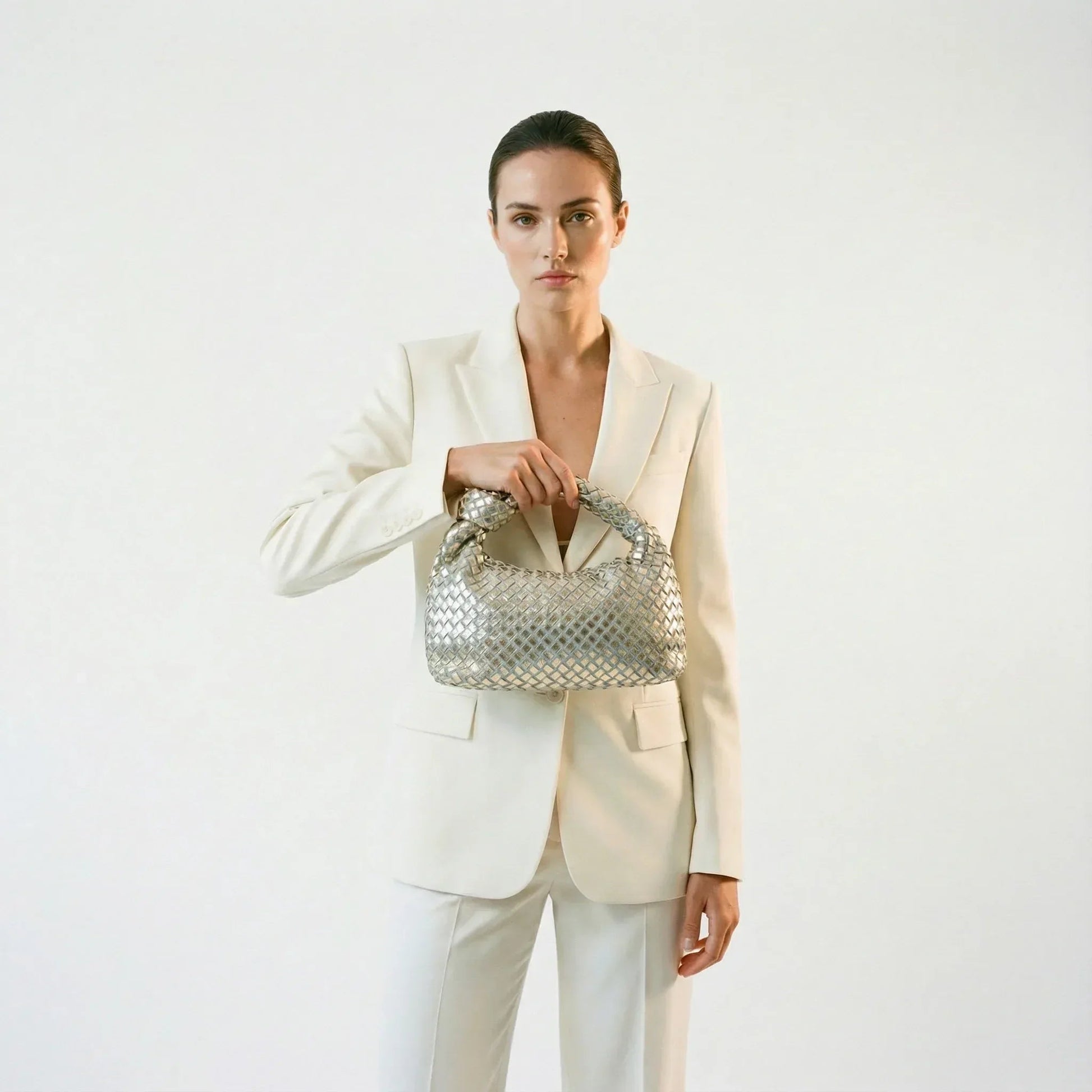 Elevate your everyday elegance with this sophisticated mesh knot handle bag, meticulously crafted from premium leather and innovative mesh detailing. The signature knotted handles provide a refined grip, while the adjustable detachable strap offers versatile styling—wear it as a structured handbag or convert it to a crossbody for effortless transition between occasions. Thoughtfully designed with interior organization and timeless proportions, this piece seamlessly bridges luxury and practicality, making it an essential addition to any discerning wardrobe.